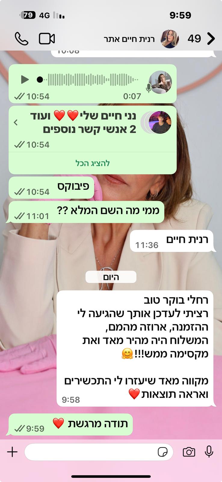 היתי אצל רחלי באתי בהתחלה סיד קפטית... מאז אני מכורה אני והבת זה כבר נהיה משפחה היא ככ דואגת ואכפת לה מהלקוחה שהיא כל פעם מוסיפה עוד תכשיר ועוד מכשיר כך שאנחנו בידיים טובות כל הזמן🙏🏻יש לה מענה בכל הבחינות ❤️
